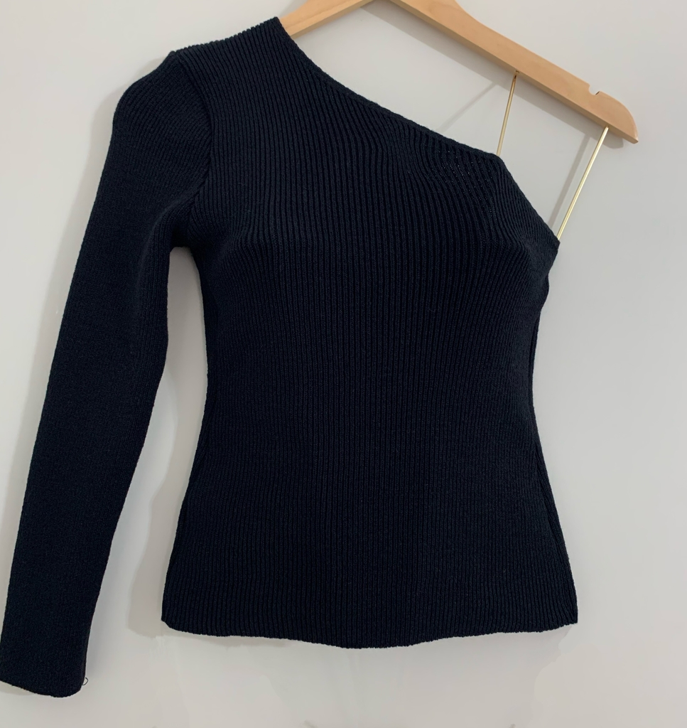 Blusa confeccionada em tricot, com decote assimétrico e manga longa única. Não possui bojo. Tecido com elasticidade, proporcionando conforto e um ótimo caimento no corpo. Ótima peça para composições lindas e modernas.